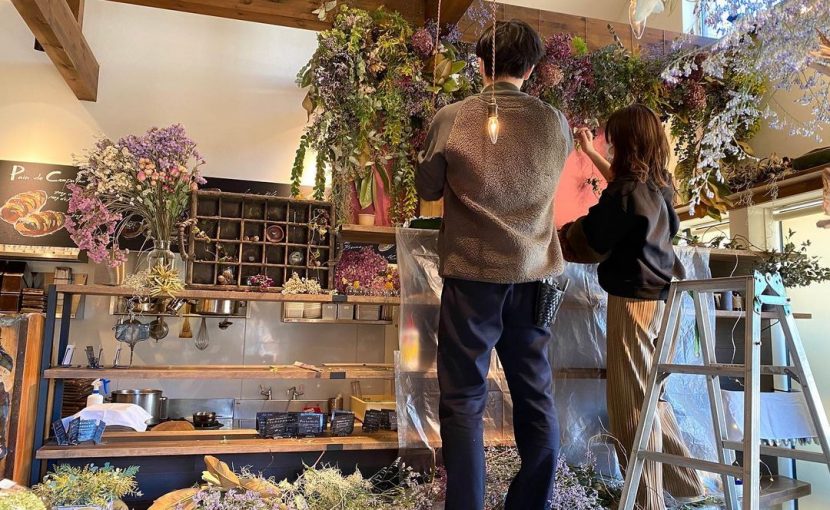 いつも丘パンの改装をお願いしてきるものずきん工房のKouya氏と、年明けにシャンデリアを素敵に変身させてくれたお花屋さん(@abemanabu_hk、 @08saya_hk )のスペシャルタッグにより、丘パン、さらに進化してます!