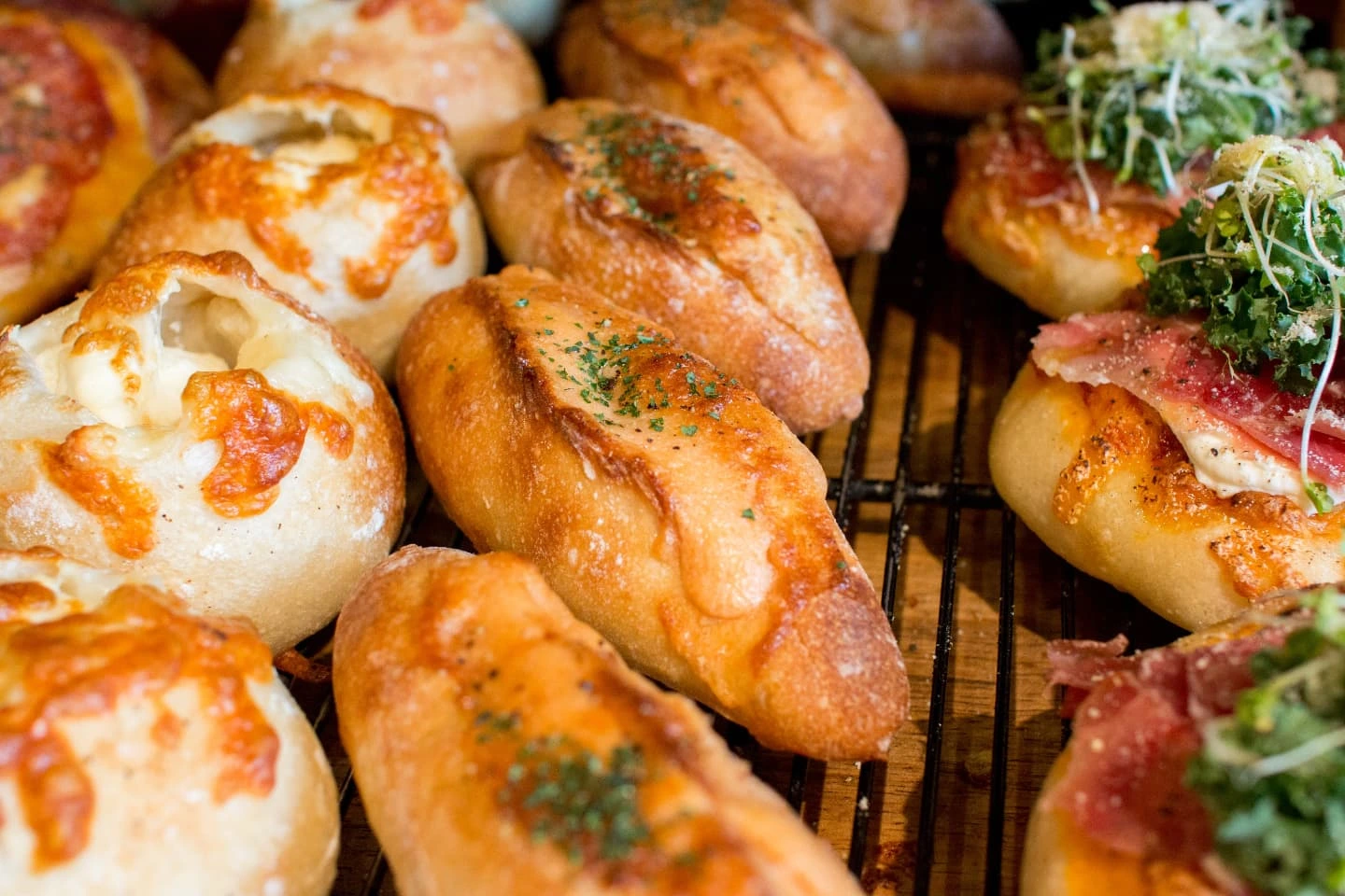 季節限定のフルーツデニッシュ、バゲットサンド、焼き立てパン、焼きドーナツと豊富にご用意しています。