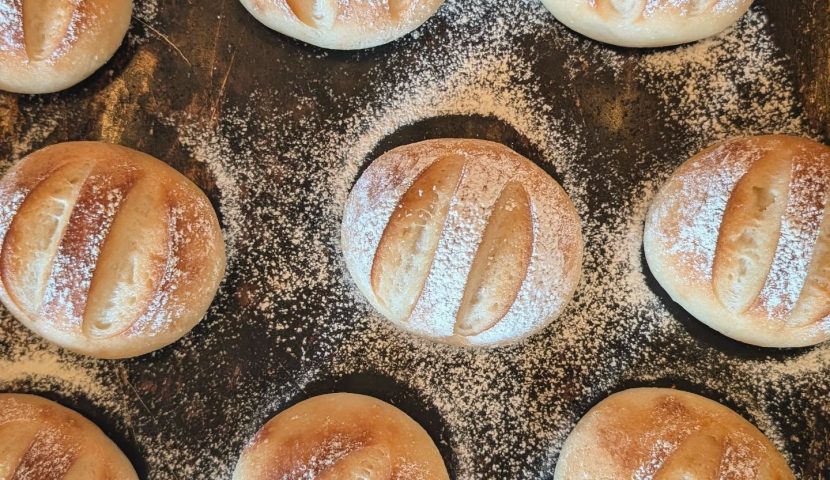 妊婦さんや赤ちゃんのことを第一に考えて開発された「無農薬はなうた玄米粉パン」焼き上がっています(2025.09.03)