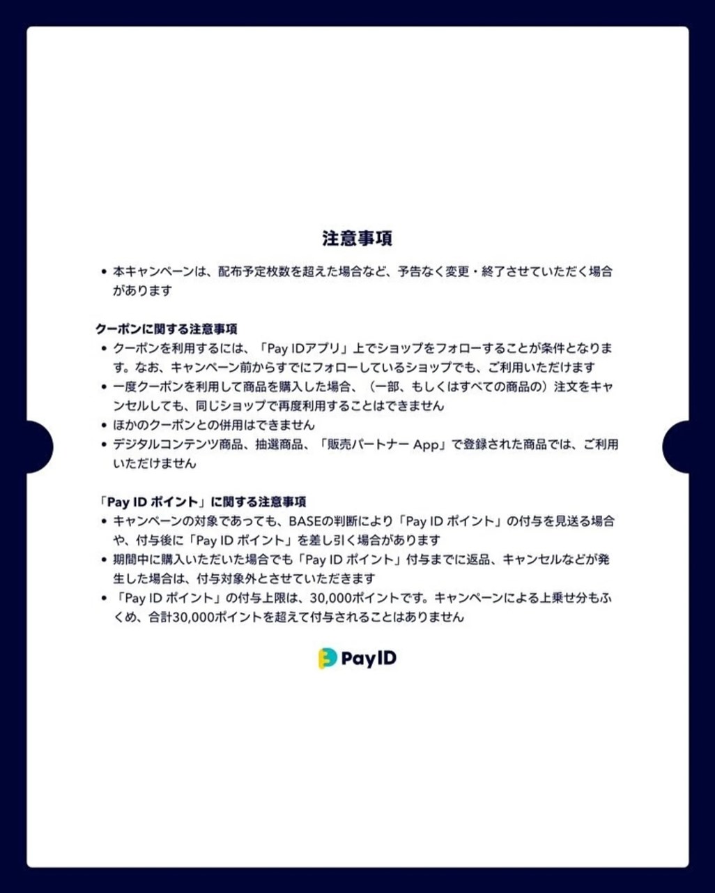 「Pay IDアプリ」上で、当ショップをフォローしていただくとフォロー割クーポン・15%OFF(上限1,000円)がご利用いただけます。