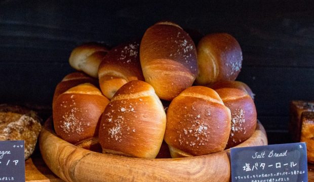 当店人気の塩バターロールは、香ばしく焼き上げられた底面のカリカリとした心地よい歯ざわり。そして、その後に続く、ふんわりと優しいもちもちとした生地の食感です。溶け出したバターの豊かな香りが口いっぱいに広がり、程よい塩味がその風味を一層引き立てます。この甘じょっぱいバランスが絶妙で、食べ始めると止まりません。