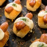 食べ応え抜群の粗挽ソーセージが、パリッとした食感のあとに、肉汁の旨味がじゅわっと広がります。フライドオニオンのコクと、酸味と辛味のバランスが絶妙な粒マスタードを合わせ、最後にとろりと濃厚な自家製チーズソースで仕上げました。チーズのコクが全体をまとめ、あと引くおいしさに。